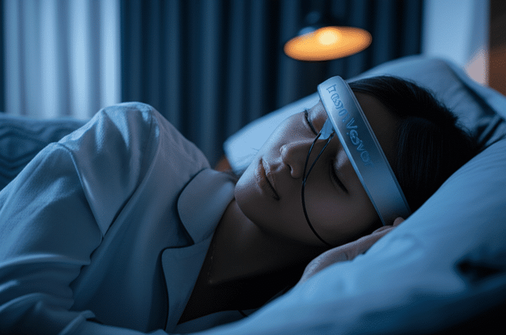 - เทคโนโลยี AI ช่วยนอนในรูปแบบที่คาดศีรษะ ทำงานโดยการตรวจจับช่วงการหลับฝัน (REM Sleep) และส่งสัญญาณกระตุ้นเบาๆ เพื่อเตือนให้ผู้ใช้รู้ตัวในความฝัน