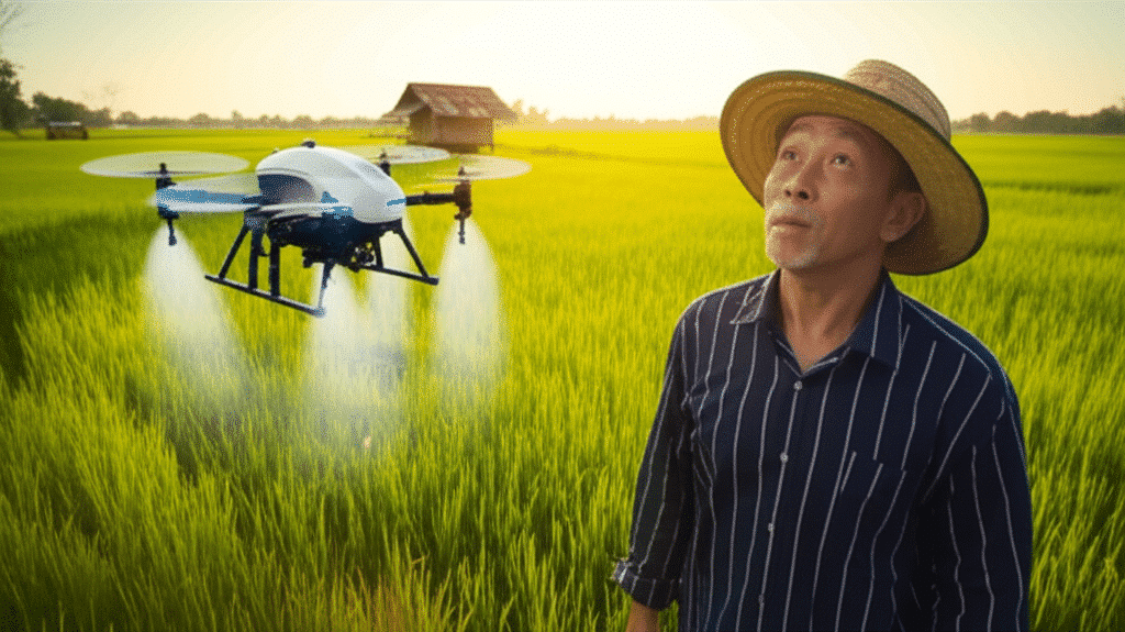 • ประเทศไทยมีตัวอย่างการพัฒนาโดรนเกษตร เช่น ‘เจ้าเอี้ยง’ ที่ถูกออกแบบมาเพื่อเพิ่มประสิทธิภาพการทำงานและใช้งานง่ายสำหรับเกษตรกรไทย