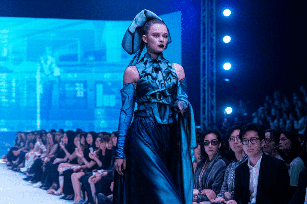 นับตั้งแต่การจัดงาน AI Fashion Week ครั้งแรกในปี 2023 ซึ่งจัดขึ้นในรูปแบบผสมผสานระหว่างโลกจริงและโลกเสมือน (Hybrid format) งานแฟชั่นโชว์ที่ขับเคลื่อนด้วย AI ก็ได้กลายเป็นแพลตฟอร์มสำคัญที่เปลี่ยนนิยามของประสบการณ์บนรันเวย์ไปอย่างสิ้นเชิง ในงาน AI Fashion Week ครั้งที่สองซึ่งจัดขึ้นในช่วงปลายปี 2023 ได้มีการนำเสนอคอลเลกชันผ่านนางแบบโฮโลแกรม ผู้ชมแถวหน้า (Front row) สามารถเข้าร่วมได้จากทั่วโลกผ่านระบบเสมือนจริง และคอลเลกชันทั้งหมดถูกสร้างสรรค์ขึ้นโดย AI