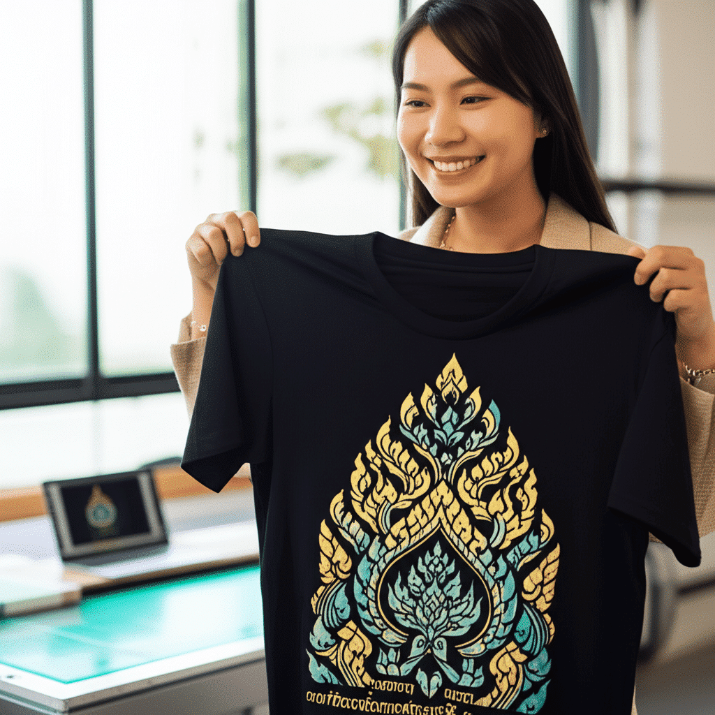 - เทคโนโลยีการผลิตที่ทันสมัย: การพิมพ์ลายเสื้อด้วยระบบดิจิทัลอย่าง Direct to Garment (DTG) ทำให้สามารถผลิตชิ้นงานคุณภาพสูงที่มีรายละเอียดคมชัดและสีสันสดใสได้ตามที่ AI ออกแบบไว้