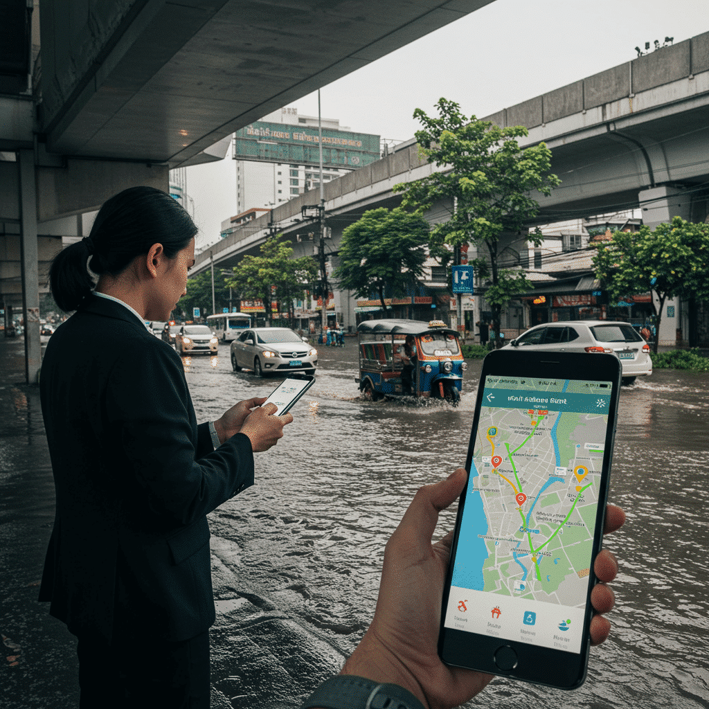 • เทคโนโลยีเพื่อการรับมือ: แอปพลิเคชันบนมือถือกลายเป็นเครื่องมือสำคัญที่ช่วยให้ประชาชนสามารถติดตามสถานการณ์น้ำ ปริมาณฝน และวางแผนการเดินทางเพื่อหลีกเลี่ยงเส้นทางที่ได้รับผลกระทบได้อย่างมีประสิทธิภาพ