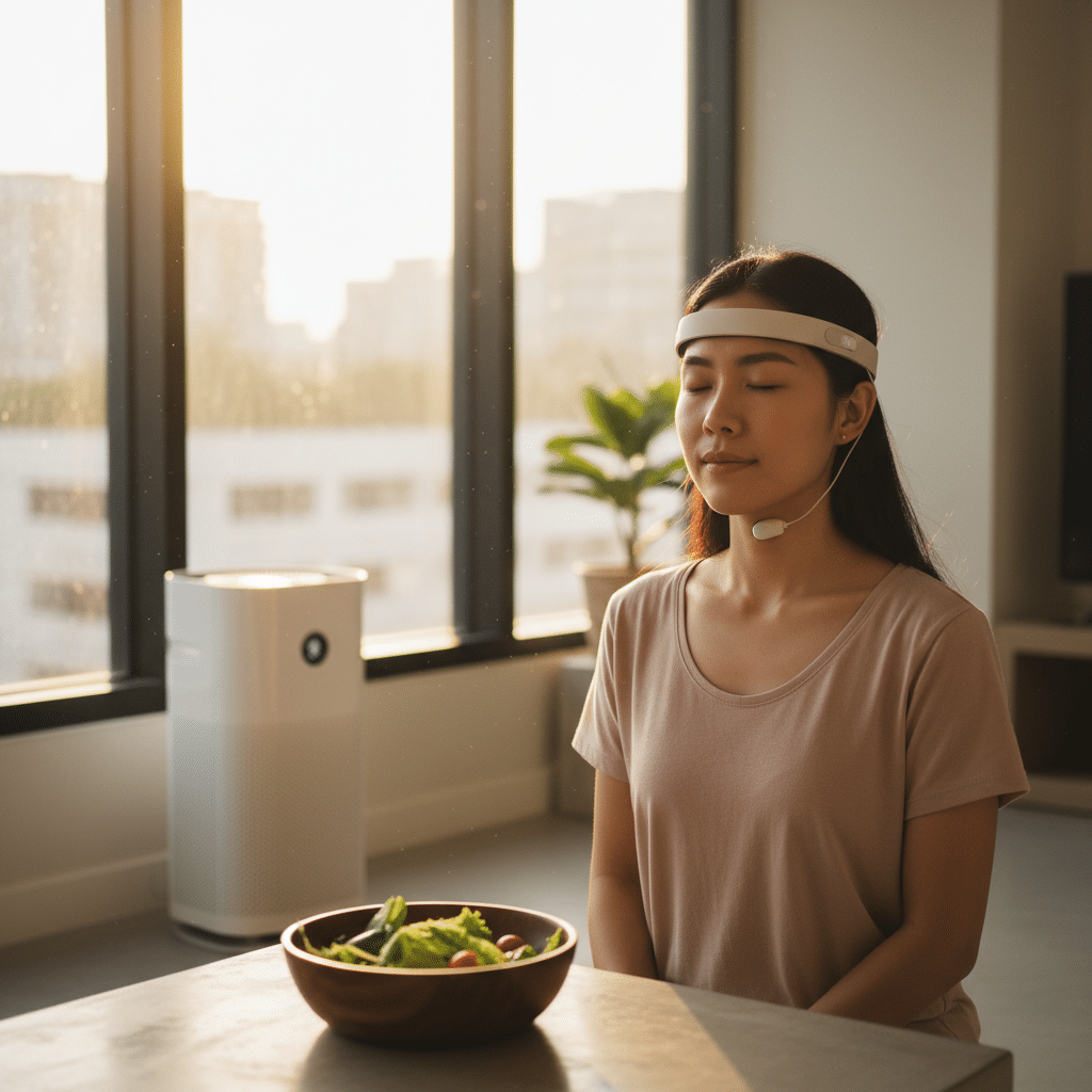 มลภาวะทางอากาศ โดยเฉพาะฝุ่น PM2.5 เป็นปัญหาใหญ่ที่ส่งผลกระทบต่อระบบทางเดินหายใจและก่อให้เกิดการอักเสบทั่วร่างกาย การปรับโภชนาการ หรือ Personalized Nutrition เป็นอีกหนึ่งแขนงของไบโอแฮกกิงที่มุ่งเน้นการเลือกกินอาหารเพื่อต่อสู้กับผลกระทบเหล่านี้