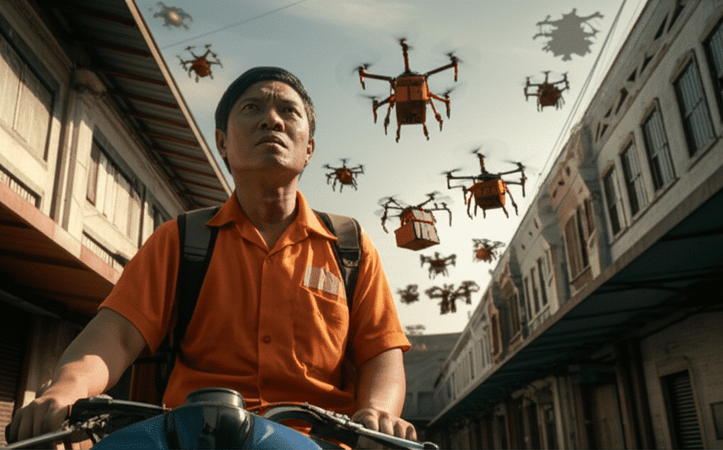 เทคโนโลยีอากาศยานไร้คนขับหรือโดรนกำลังเปลี่ยนโฉมหน้าอุตสาหกรรมโลจิสติกส์อย่างรวดเร็ว จากที่เคยเป็นเพียงแนวคิดในภาพยนตร์วิทยาศาสตร์ ปัจจุบันโดรนส่งของได้กลายเป็นความจริงที่กำลังสร้างสมรภูมิธุรกิจใหม่บนท้องฟ้า ซึ่งส่งผลกระทบต่อวิถีชีวิตและโครงสร้างเศรษฐกิจอย่างหลีกเลี่ยงไม่ได้