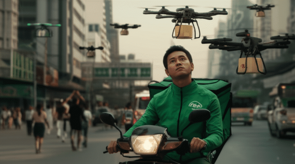 เทคโนโลยีอากาศยานไร้คนขับ หรือโดรน กำลังเข้ามามีบทบาทสำคัญในหลากหลายอุตสาหกรรม และล่าสุดได้ขยายตัวสู่ภาคธุรกิจเดลิเวอรีในเขตเมืองอย่างกรุงเทพมหานคร การนำโดรนมาใช้ส่งอาหารและพัสดุได้จุดประกายความหวังในการแก้ไขปัญหาการจราจรและเพิ่มความรวดเร็วในการให้บริการ แต่ในขณะเดียวกันก็สร้างความกังวลต่ออนาคตของอาชีพไรเดอร์ ซึ่งเป็นกำลังหลักของอุตสาหกรรมนี้มาโดยตลอด