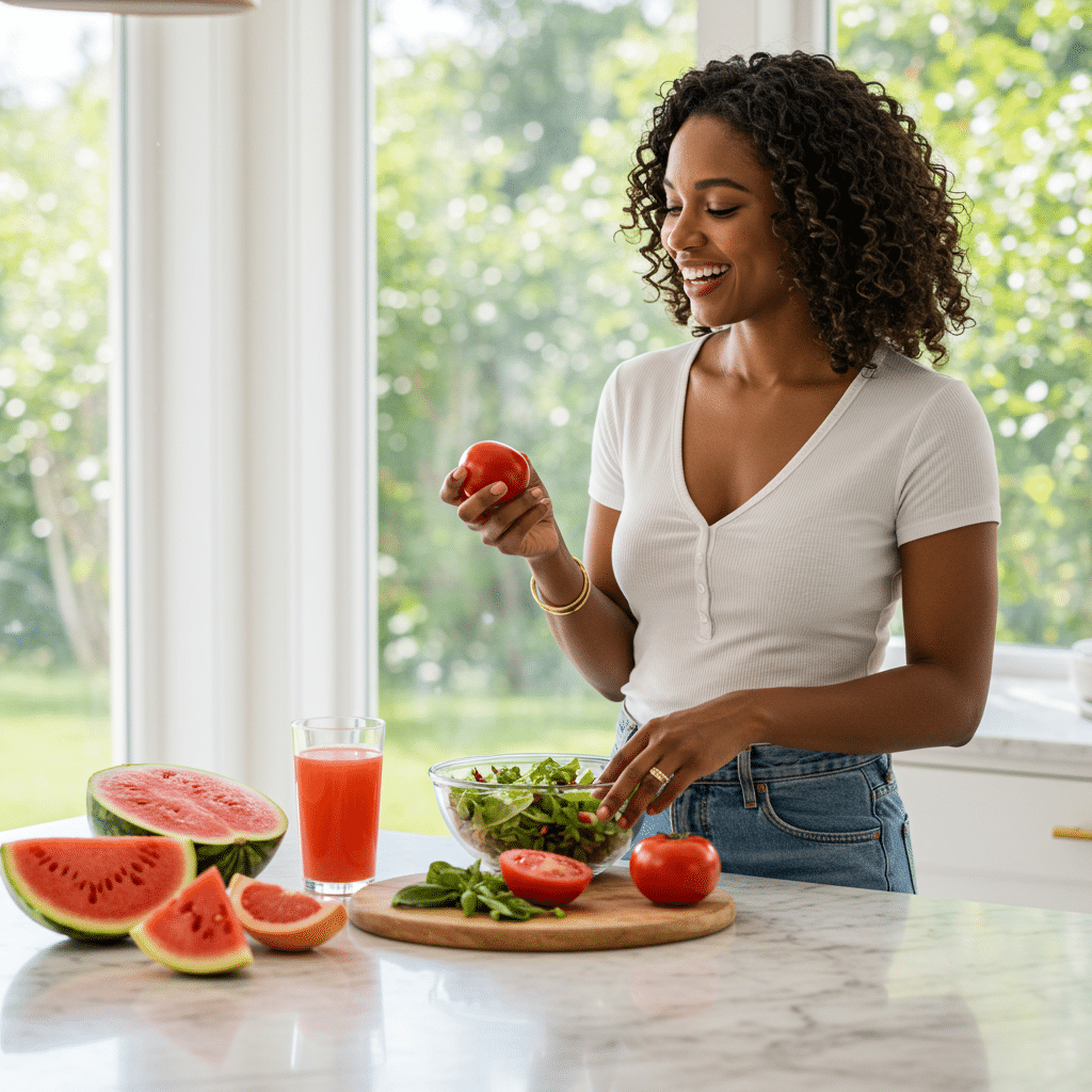 การได้รับไลโคปีนสามารถทำได้ง่ายจากการบริโภคผักและผลไม้สีแดงและสีชมพู โดยมีมะเขือเทศเป็นแหล่งที่โดดเด่นที่สุด การปรุงสุกมะเขือเทศและรับประทานร่วมกับไขมันดีจะช่วยให้ร่างกายดูดซึมและนำไลโคปีนไปใช้ประโยชน์ได้อย่างสูงสุด การใส่ใจเลือกรับประทานอาหารที่อุดมด้วยไลโคปีนเป็นประจำจึงเป็นวิธีที่เป็นธรรมชาติและมีประสิทธิภาพในการเสริมสร้างสุขภาพที่ดีจากภายในสู่ภายนอก