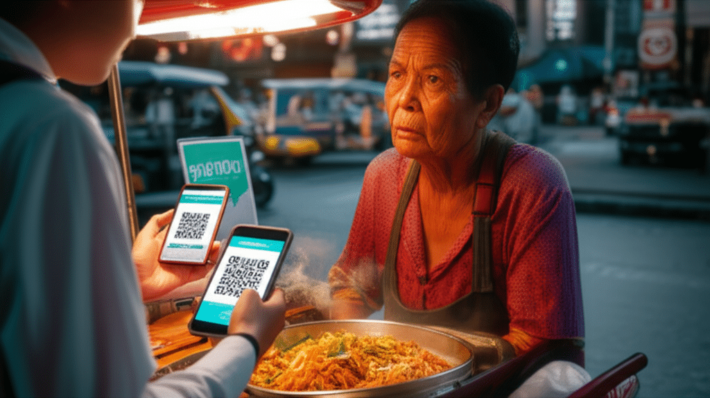 การชำระเงินผ่านการสแกน Quick Response Code หรือ QR Code ได้กลายเป็นมาตรฐานที่พบเห็นได้ทั่วไปในร้านค้าสตรีทฟู้ดทั่วประเทศ ตั้งแต่รถเข็นขายผลไม้ไปจนถึงร้านอาหารขนาดเล็กในตลาด ความสำเร็จนี้เป็นผลมาจากการพัฒนาโครงสร้างพื้นฐาน “พร้อมเพย์” (PromptPay) และมาตรฐาน Thai QR Payment ที่ช่วยให้การทำธุรกรรมข้ามธนาคารเป็นไปอย่างราบรื่นและมีค่าธรรมเนียมต่ำหรือไม่มีเลยสำหรับยอดเงินจำนวนไม่มาก