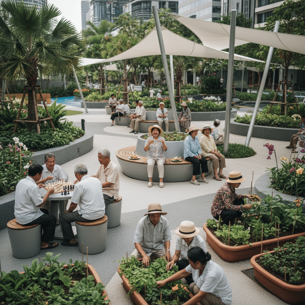 - บริการด้านสุขภาพและการดูแล: การมีสถานพยาบาลที่เข้าถึงง่าย, บริการดูแลสุขภาพเชิงป้องกัน, ศูนย์ดูแลผู้สูงอายุกลางวัน (Day Care) และการส่งเสริมเทคโนโลยีด้านสุขภาพ (Health Tech) เพื่อการดูแลระยะไกล