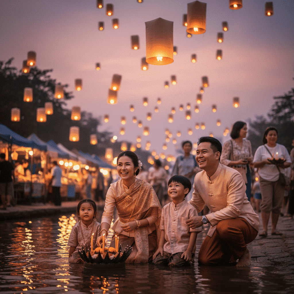 เทศกาลลอยกระทงเป็นหนึ่งในประเพณีที่งดงามและมีความสำคัญที่สุดของไทย เป็นช่วงเวลาที่ผู้คนจะมารวมตัวกันริมแม่น้ำลำคลองเพื่อลอยกระทงที่ประดิษฐ์จากวัสดุธรรมชาติ พร้อมทั้งจุดธูปเทียนและตั้งจิตอธิษฐาน เพื่อเป็นการสะเดาะเคราะห์และขอขมาต่อพระแม่คงคา เทพแห่งสายน้ำ